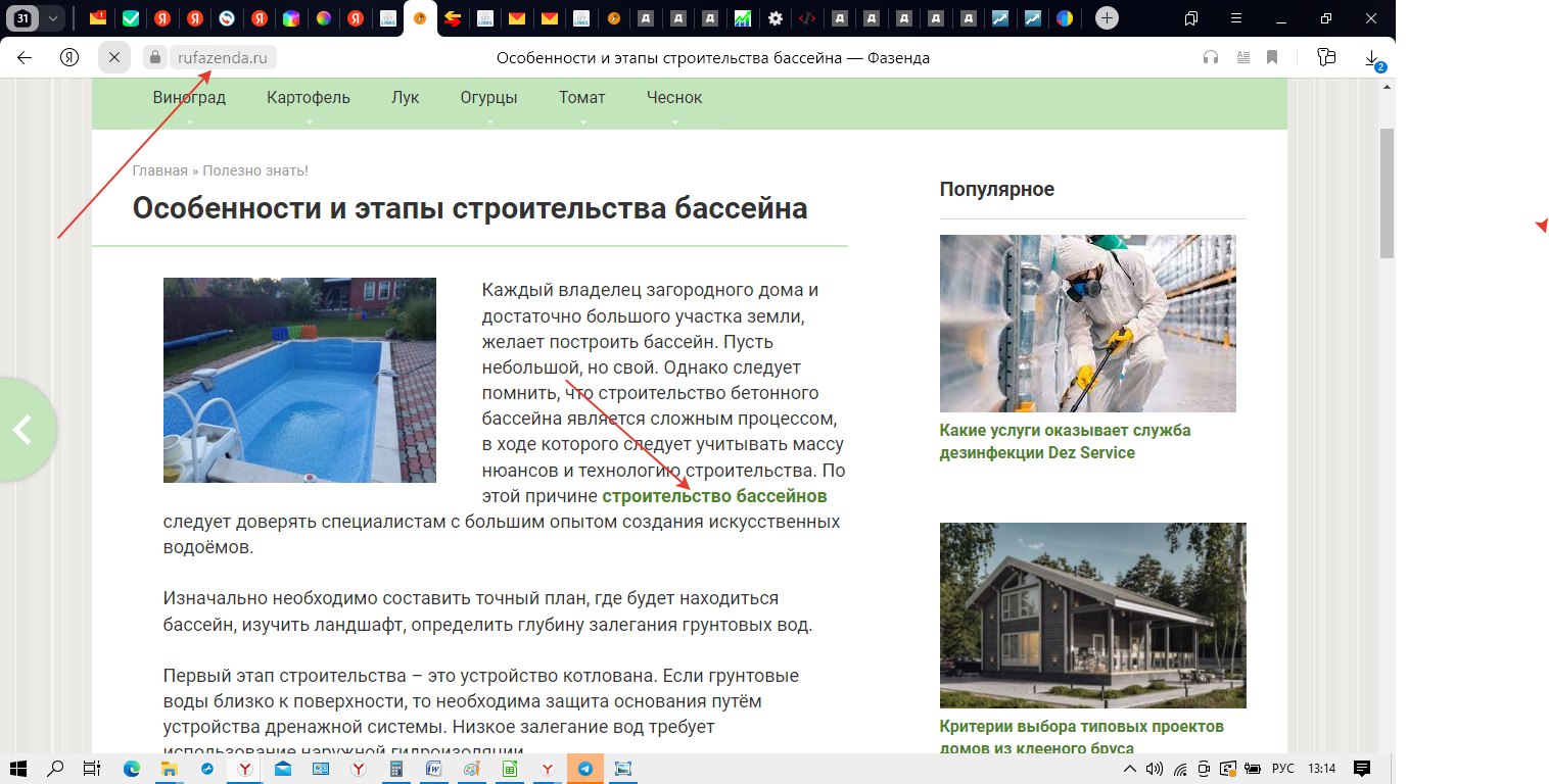 arsenalclining.ru................... Продвигаемая фраза - "строительство бассейнов"